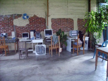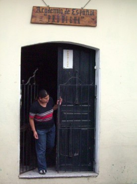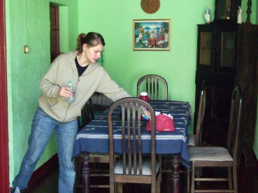 In dieser Schule hab ich also meine Vormittage zugebracht. Meine Lehrerin Rebekka hat mir einiges abverlangt, aber es hat sich auch gelohnt. Die meiste Zeit sassen wir an einem der Tische um miteinander zu sprechen, einmal sind wir aber auch an den Computer und ich musste ihr via Internet meine Heimat zeigen und erklären. Der zweite Teil des Sprachkurskonzeptes ist die Unterbringung in einer einheimischen Familie. Also habe ich diese Woche in einem Guatelamtekischen Haushalt verbracht. Mit Phillip aus Basel (unten links) und Simone aus Stuttgart (zweites unten rechts) waren noch zwei weitere Deutschsprachige in “meiner Familie” untergebracht und so haben wir Abends, nach den Hausaufgaben doch auch manches Deutsche Wort gesprochen...