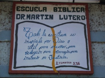 Apopa ist eine kleinere Stadt, die sich mehr oder weniger direkt an San Salvador anschließt. Die lutherische Gemeinde von Apopa wird von Francisco betreut und der wiederum hat mich gebeten, in seiner Gemeinde Musikunterricht zu geben. Seit November fahre ich nun jede Woche hierher und unterrichte etwa 10 Jungs und Mädels im Alter von 6 bis 14 Jahren im Gitarren- und Flötenspielen, bzw. in der elemtarsten Musiktheorie und Notenkunde. Erklärtes Ziel (zumindest von Pastor Francisco) ist es, dass die Jugendlichen möglichst bald in der Lage sind, den wöchentlichen Gottesdienst musikalisch zu begleiten. Ob sie das bis zu meinem Abschied schaffen, sei dahingestellt, aber die Arbeit mit den Kids macht mir großen Spaß und auch Erfolge stellen sich inzwischen ein. Hoffentlich folgen hier auch bald ein paar Bilder vom Unterricht...
