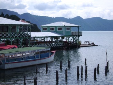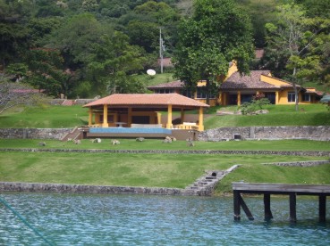 Plötzlich taucht von der Strasse durch die Berge der See auf, ein sehr beeindruckender Anblick (Fotos oben) Der Lago Coatapeque gehört mit zu den größten Seen von El Salvador. In einem Cafe (links und rechts) haben wir Station gemacht und auf einer Terasse im See kalte Getränke und das Leben genossen. (unten) So gestärkt machten wir uns dann mit einem kleinen Boot auf den Weg bzw. aufs Wasser, die nähere Umgebung zu erkunden. An diesem See haben die Reichen des Landes Villen ans Ufer gesetzt, wo man sich auch bei uns in Deutschland schwer tut sowas zu finden. Hier verbringt die Oberschicht El Salvadors also ihre Freizeit, Ferien und Wochenenden... (ganz unten)