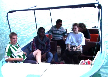 ...die fünfte im Bunde bzw. im Boot war Inken, die Patetntochter von Köhlers, die ein paar Wochen zu Besuch in San Salvador ist. Zu Tas und Thomas noch kurz die Geschichte: Sie sind aus Sri Lanka wegen des Bürgerkrieges geflohen und wollten nach Canada. In Salvador wurde entdeckt, dass sie gefälschte Pässe haben, weshalb sie hier erstmal gestrandet sind. Nach einigen Wochen im Gefängnis fanden sie vorerst Zuflucht in der Lutherischen Kirche und verdienen sich ihren Lebensunterhalt durch Mitarbeit in der Casa de la Esperanza. Beide hoffen, Anfang nächsten Jahres weiter nach Canada, wo sie Verwandte haben, reisen zu können. Thomas, der sehr gut Deutsch spricht, hat im Bürgerkrieg Frau und Kind verloren. Während er arbeiten war, wurde sein Heimatdorf bombardiert... Er erzählt viel von Prügel und Gewalt, Inhaftierung und Folter, die ihm widerfahren sind und dass es nach dem Tod seiner Familie keine Chance mehr für sich in seiner Heimat sah. “Ich möchte irgendwohin, wo ich in Frieden Leben und das was ich gelernt habe, ausüben kann”...