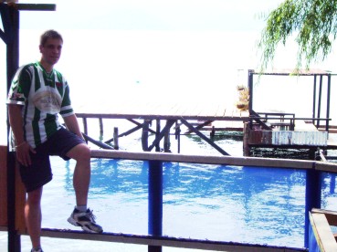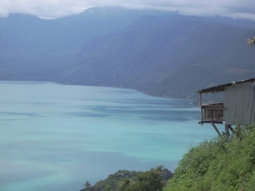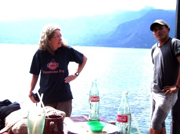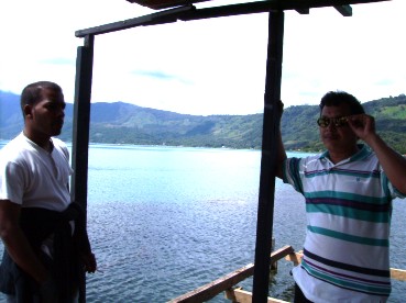 Am 1. November, an Allerheiligen, war mal Zeit, einen Ausflug ins Land zu machen. Mit Baudillo, dem Fahrer von Köhlers, Waltraud, Patentochter Inken, die momentan zu Besuch ist und Tas und Thomas, zwei Asylanten aus Sri Lanka, machten wir uns im Pick Up auf den Weg. Ziele waren der Lago de Coatepeque, ein sehr beeindruckender Vulkansee und anschließend der Pazifik (siehe Seite zum Pazifik). Von oben, vom Vulkan erblickten wir zu ersten Mal den See und es war eine überwältigende Aussicht, die die Fotos leider nur kaum wiedergeben können. Nach kurzer Pause sind wir runter ans Ufer gefahren, wo wir in einem Cafe direkt am oder im Wasser was getrunken haben, bevor wir eine kleine Bootsrundfahrt gemacht haben. Vor allem für Tas und Thomas war das ein großes Erlebnis, wobei es etwas Überzeugungsarbeit gebraucht hat, bis sie bereit waren, tatsächlich in das Boot einzusteigen...