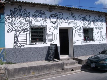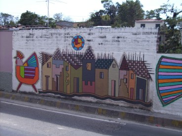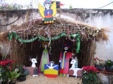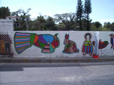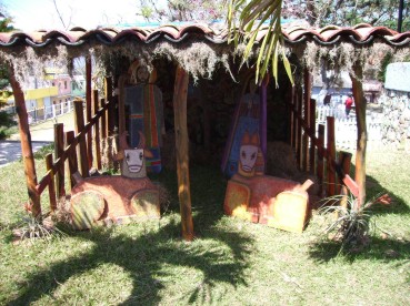 Am Donnerstag vor Weihnachten hatte ich tatsächlich mal einen echten und ganzen freien Tag und über Tania (Rechtsanwältin in der Iglesia Luterana) und zwei Freunde von ihr, hatte ich die Möglichkeit, nach La Palma zu fahren. La Palma ist ein kleines, verschlafenes Nest im Nordwesten des Landes, der völlige Kontrast zu San Salvador und berühmt für sein Kunsthandwerk. Der ganze Ort ist voll mit Märkten und Ständen, wo man unter anderem die, bei uns aus den Weltläden bekannten, bunten Holzkreuze oder andere Gegenstände im gleichen Stil bekommen kann. Aber natürlich gibt es noch unendlich viel mehr andere mehr oder weniger schöne Sachen.Darüber hinaus wird das Ortsbild durch die ebenso bunte Bemalung von Häusern, Mauern, Gehsteigen, ja sogar Laternenpfählen geprägt. Irgendwie kam hier sogar ein wenig Weihnachts(markt) Stimmung auf. Ist zwar doch ganz anders, als bei uns, aber Krippen gab es dort an diesem Tag auch sehr viele.
