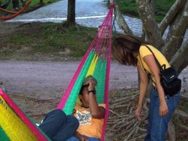 Anschließend fuhren wir in einen nahegelegenen Club, mitten im Wald, um dort erstmal für teures Geld ein ziemlich mässiges Essen zu verspeisen. Dann haben wir den Nachmittag im Park verbracht. Während Alex und Moises ein Mittagsschläfchen in einer der überall verfüg- baren Hängematten vorzogen, sind Tania und ich spazieren gegangen. Es war die erste Möglichket für mich, seit ich hier bin, mal  spazieren zu gehen. Kein Lärm, kein Verkehr, nur Ruhe und (!) saubere Luft. Wunderbar!