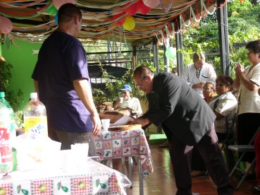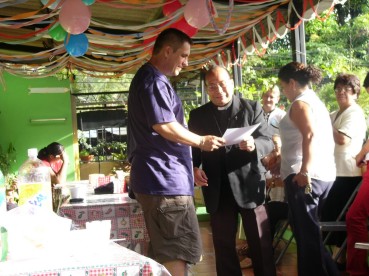 ...dann überreichte mir der Bischof noch ein Holzkreuz aus seinem Arbeitszimmer. Das Kreuz in Verbindung mit den Abendmahlssymbolen, Brot und Kelch... Dann folgten meine Abschiedsworte, die doch deutlich länger waren, als die paar Brocken, die ich zu meinem Einstand von mir geben konnte (hab schon auch ganz schön Spanisch gelernt in diesem Jahr...)