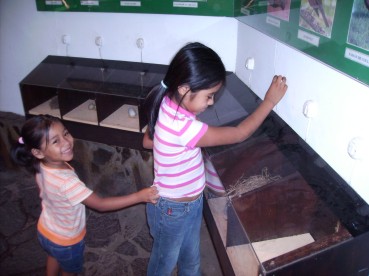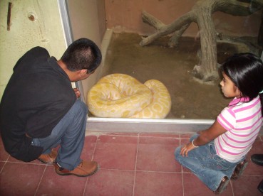 Wenn man den Zoo betritt, kommt man gleich in eine Halle mit verschiedenen “Lern-Spielen” zur Tierwelt. Wuilver versuchte vergeblich, ein großes Puzzle, das ein Hirschgeweih ergeben sollte, zu lösen. Nach 10 Minuten gab er auf und wir gingen weiter ins Reptilienhaus. Die Schildkröten hatten es Laura und Alejandra besonders angetan, bei den Schlangen waren sie eher etwas zurückhaltend...
